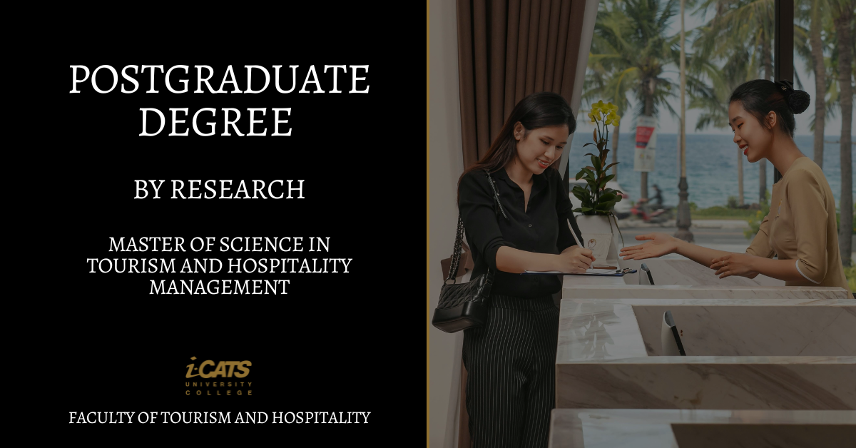 The Master of Science in Tourism and Hospitality Management is committed to producing graduates who can undertake independent research that further advances the fundamental and applied knowledge on education in the country and the wider intellectual communities. Through innovative, research-based educational practices, the programme aims to assist graduates to lead and motivate through a team effort in analytical and communication abilities. As they develop their knowledge through research, the graduates will develop lifelong learning interests and explore and seek opportunities in education with integrity and ethical and professional values.